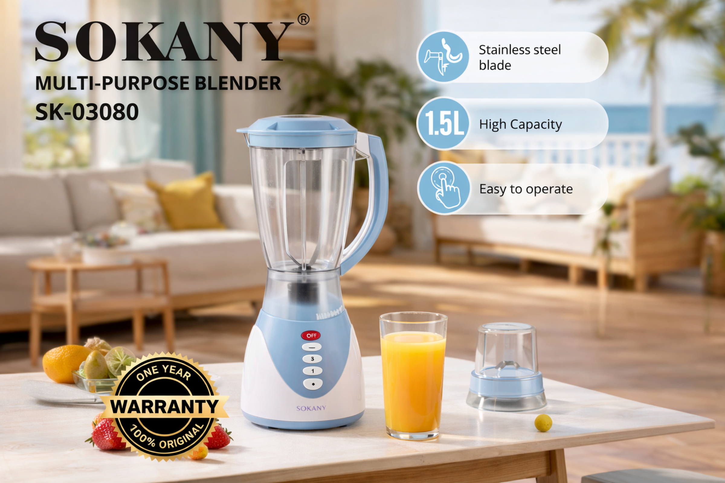 Sokany SK-03080 — практичный и универсальный блендер для дома. Отлично сочетает удобство, функциональность и доступную цену.